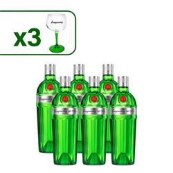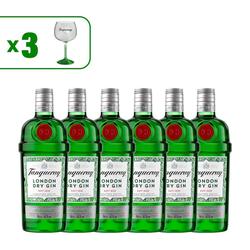 • 6 UNIDADES TANQUERAY LONDON DRY GIN + 3 COPAS